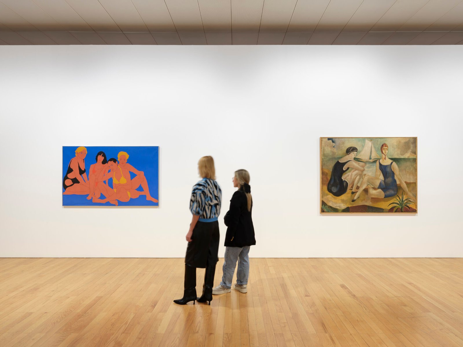 É pensando nessa ideia do Atlântico que se destacam duas pinturas de cronologias diferentes colocadas lado a lado: uma de Almada Negreiros de 1925, e outra de Nikias Skapinakis de 1973, ambas abordando o tema clássico das «Banhistas». Estes dois exemplos sintetizam a abordagem inventiva da curadoria de Nuria Enguita, Marta Mestre e Mariana Pinto dos Santos, para lá das ideias de estilos, movimentos e autores convencionais.