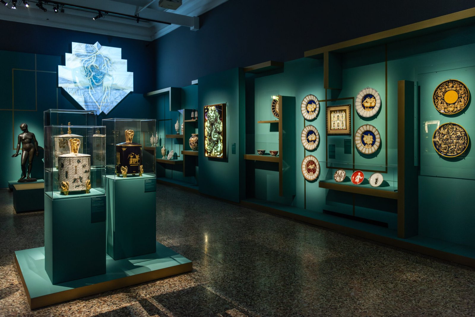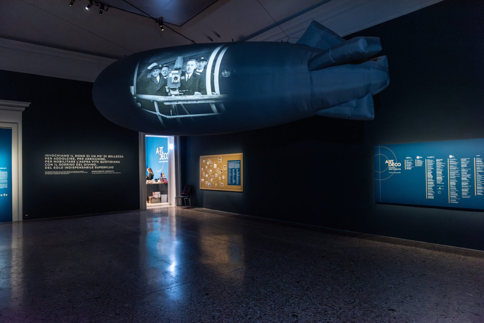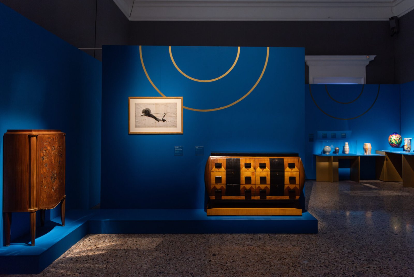 Dez anos de um “sonho” totalmente europeu, no qual foram enxertadas criações italianas, às quais a exposição opta por dedicar uma atenção especial, tal como na “Exposição Internacional de Paris de 1925”, dedicada à Art Déco, foi dada atenção e estima incondicional aos projectos apresentados por artistas italianos. As salas exibem as invenções verdadeiramente excepcionais de Gio Ponti para Richard Ginori, mas também as obras concebidas por Tomaso Buzzi, Paolo Venini, Galileo Chini, o vidreiro Vittorio Zecchin, o mestre marceneiro Ettore Zaccari, o ourives Alfredo Ravasco e muitos outros protagonistas da cena italiana que expuseram com sucesso nas Bienais Internacionais de Artes Decorativas Modernas na Villa Reale em Monza em 1923, 1925, 1927 e 1930, que deram origem à “Trienal de Milão,” em 1933. Uma geração de artistas, artesãos, arquitectos e designers sancionou, sem dúvida, o nascimento do design italiano. A exposição dedica-se também ao mundo da moda, um dos elementos específicos do gosto déco e das novas tendências de estilo. Em Veneza, o primeiro desfile de moda no Excelsior marcou o início de uma nova era para a alta costura, enquanto os grandes nomes da moda e das artes plásticas começaram a ser destacados.