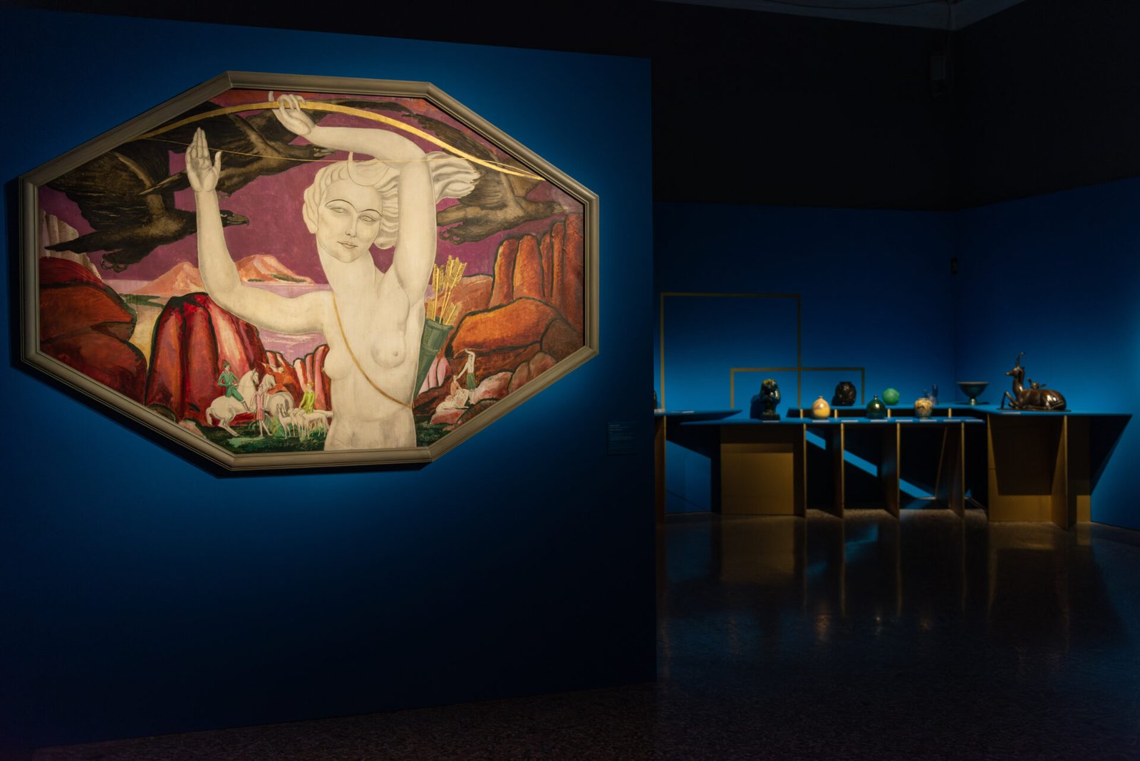 Graças também ao MIC-Museo Internazionale delle Ceramiche de Faenza e à Fondazione Vittoriale degli Italiani de Gardone (Brescia), que contribuíram com importantes empréstimos para a realização deste projecto expositivo, a exposição pretende investigar a génese, o desenvolvimento e o rápido fim da Art Déco. Se, de facto, a Art Déco durou apenas uma década em França e em Itália, este fenómeno estilístico viria a repercutir-se no resto do mundo ao longo da década de 1930.