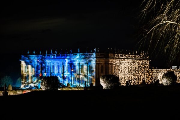 No exterior, o Palácio e os Jardins são iluminados com um novo e inovador espectáculo imersivo de luz, combinando uma projecção digital especialmente encomendada, luzes e som. Os relvados e árvores em frente à casa transformam-se numa tapeçaria viva e em movimento de cor, enquanto a popular Feira de Natal (até 14 de dezembro) e a Vila Gastronómica se deslocam para o lado sul do Palácio.