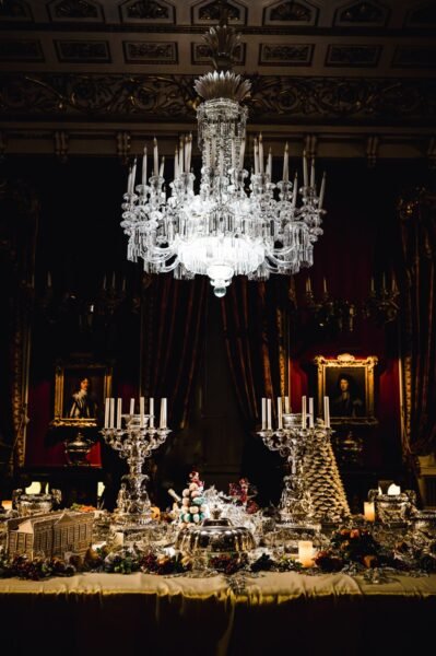 De uma cena efusiva e atraente de véspera de Natal na Grande Sala de Jantar, com árvores decoradas junto às lareiras, e ainda uma mesa festiva adequada para reis e rainhas, estes ambientes convidam os visitantes a entrar no espírito de Festa em Chatsworth.